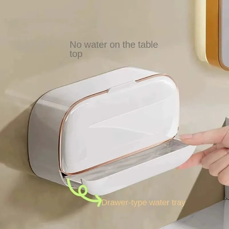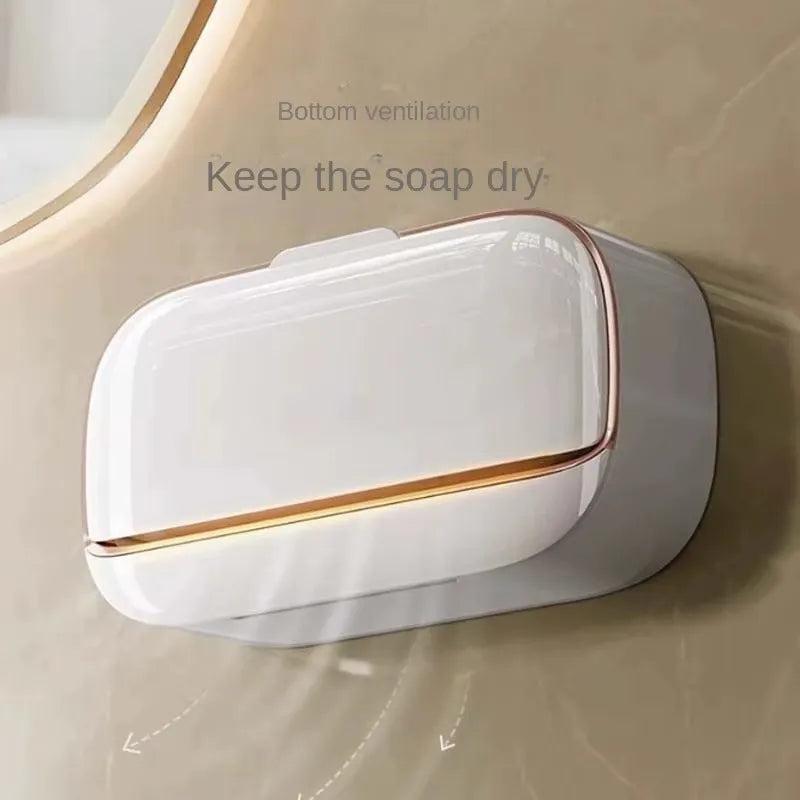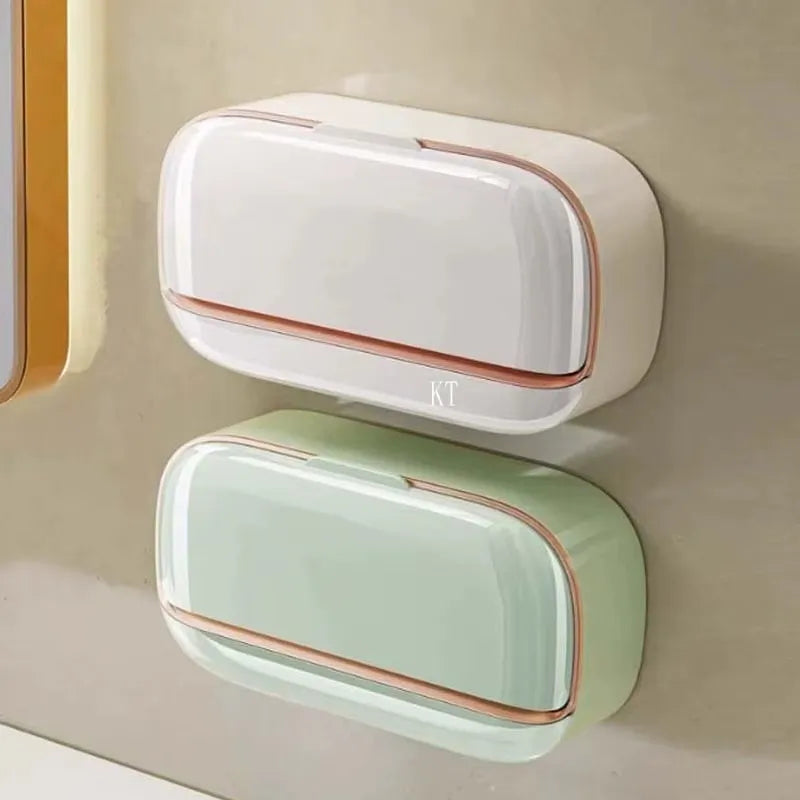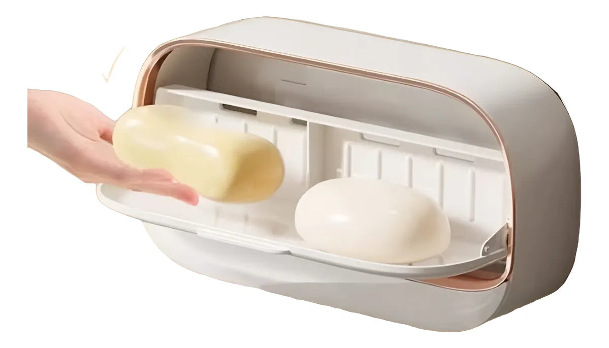 Jabonera Pared Tapa Abatible Doble Adhesiva Bandeja Drenaje Blanco